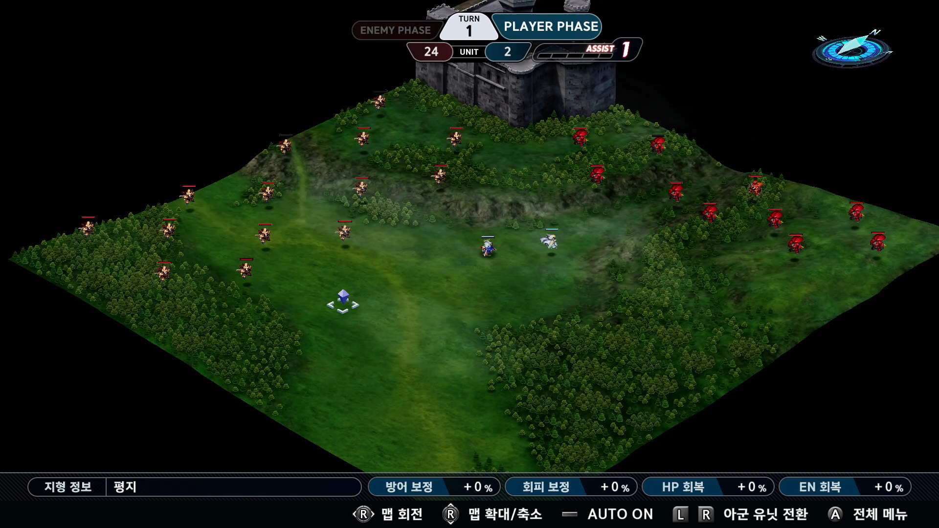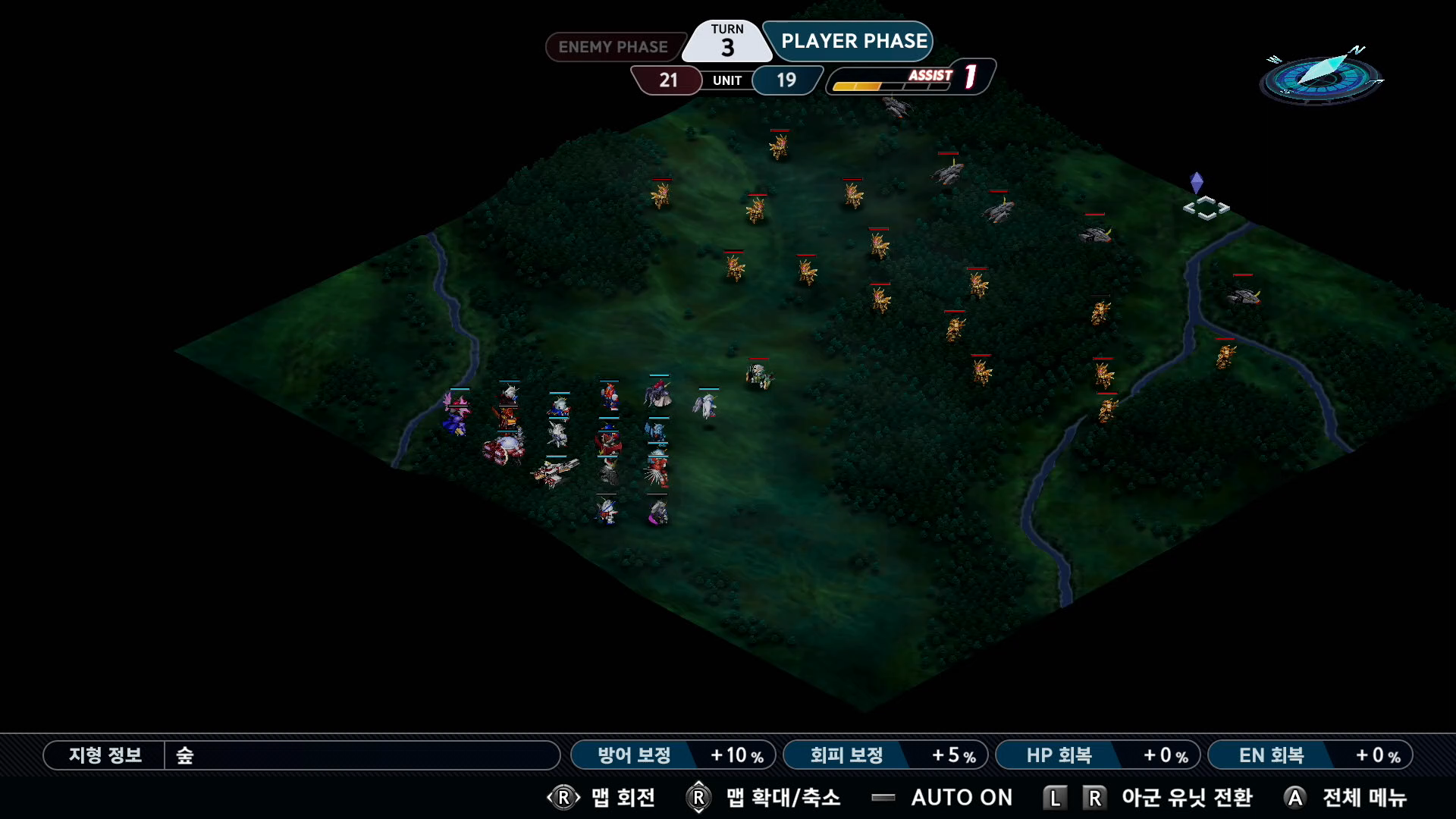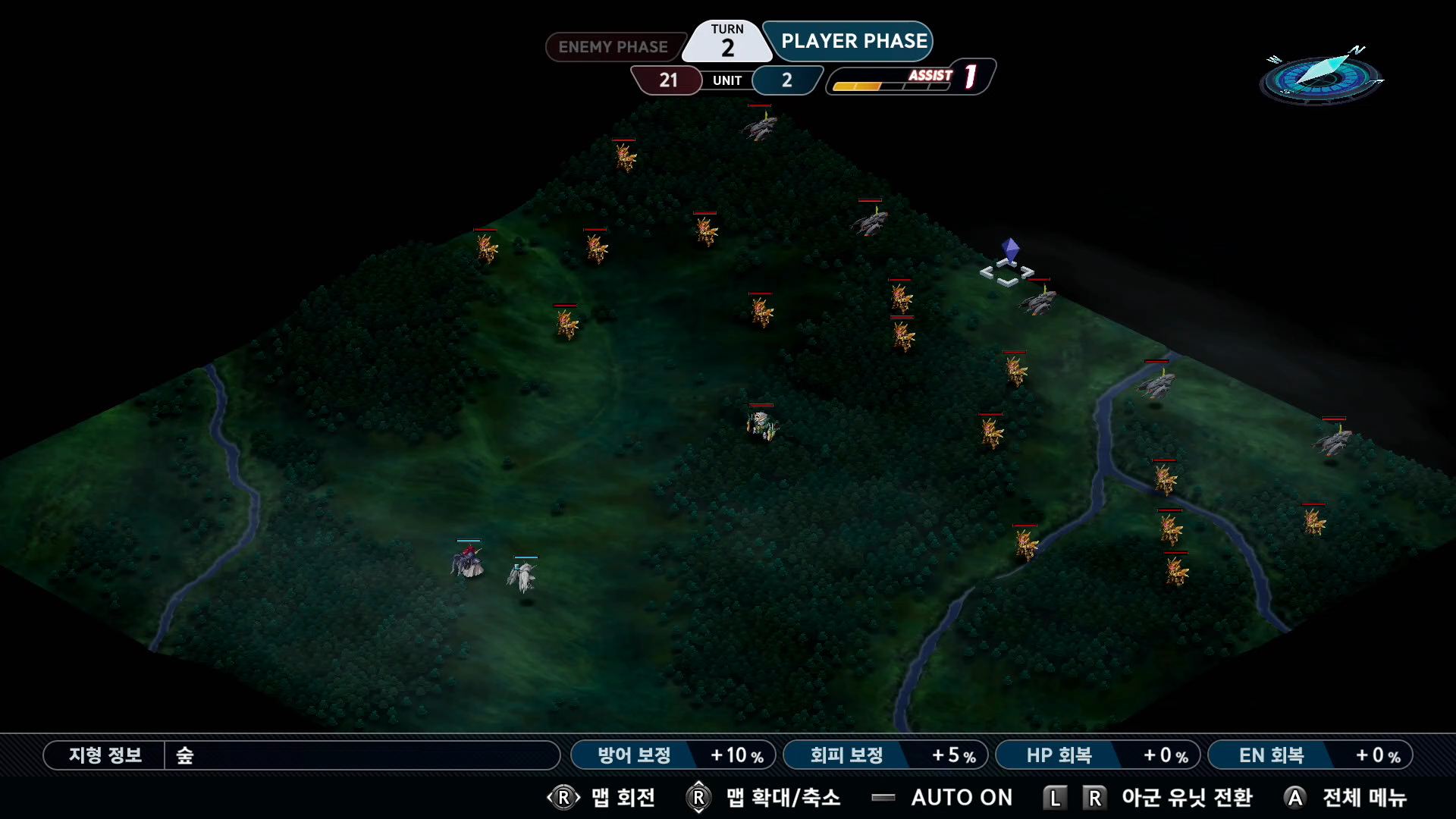 적들이 잔뜩 있고 전 이번엔 엘가임 쪽을 전혀 육성하지 않았기에 무리하지 않았습니다.