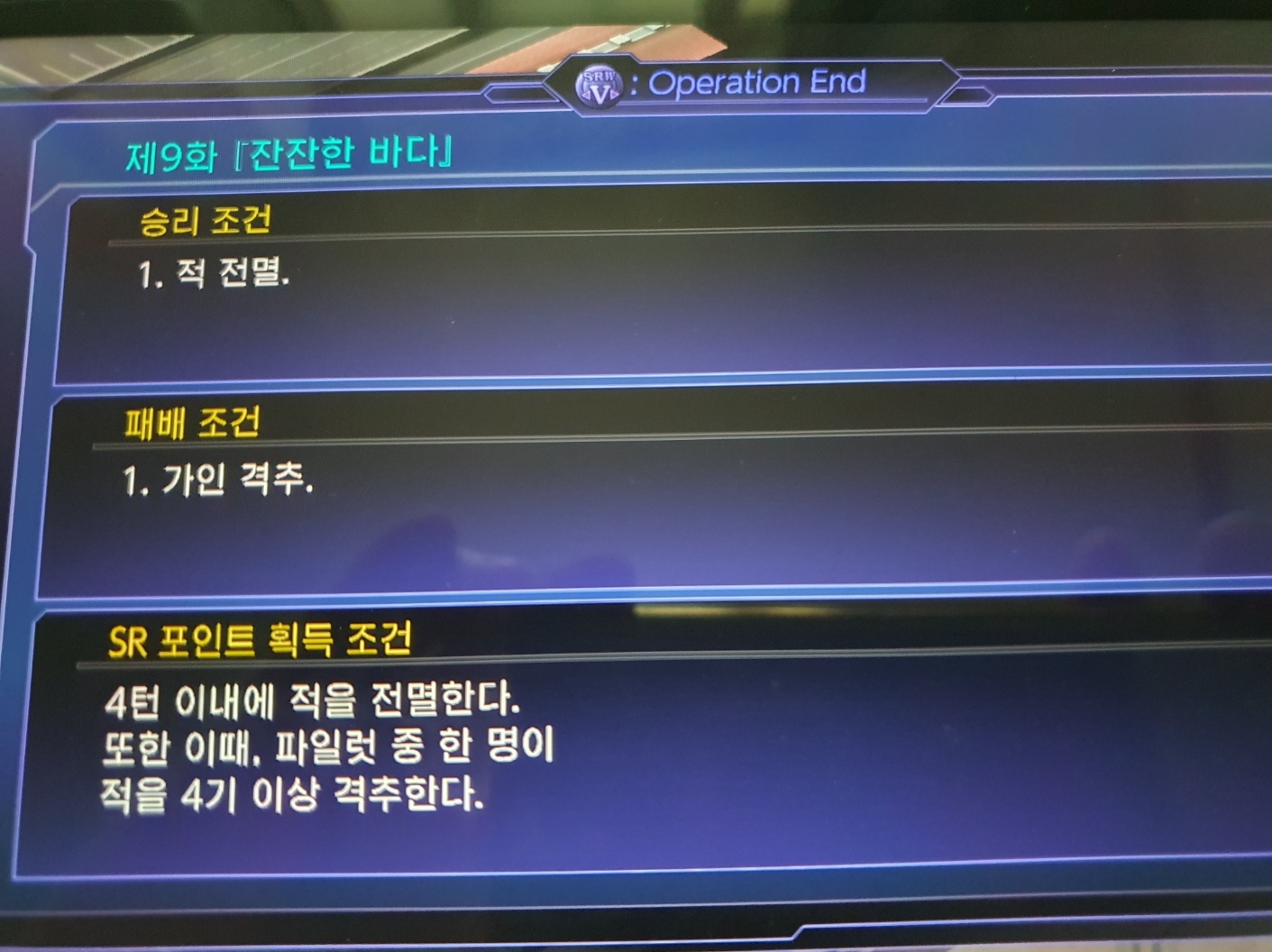 - SR 포인트 조건: (4 턴 이내에 적을 전멸시킨다. 이때 파일럿 한 명이 4기 이상 격추한다.)