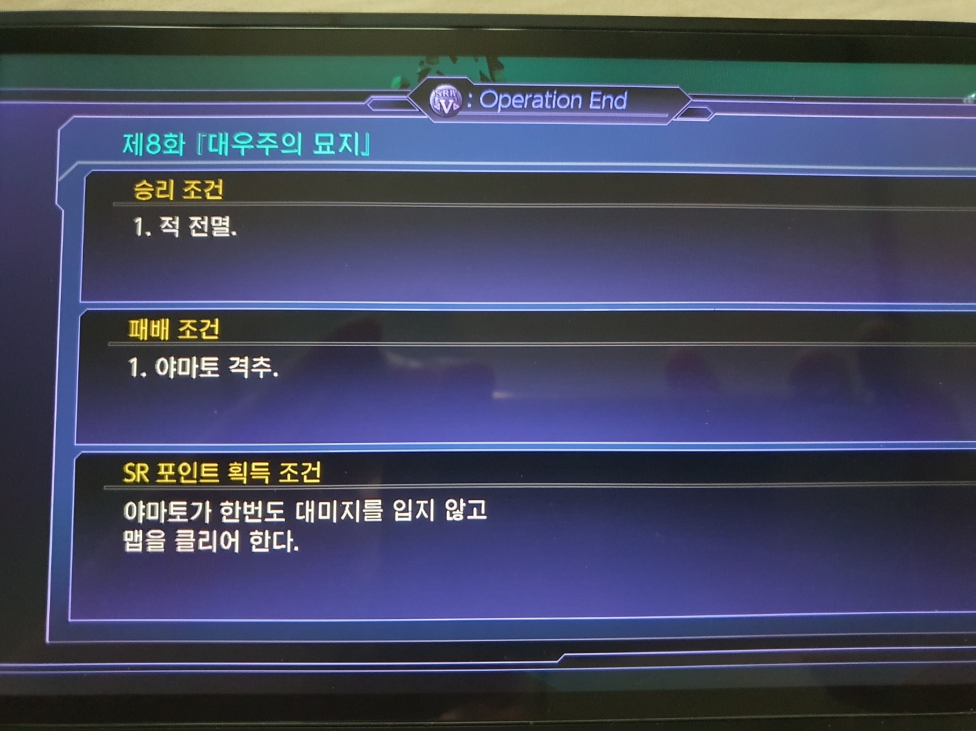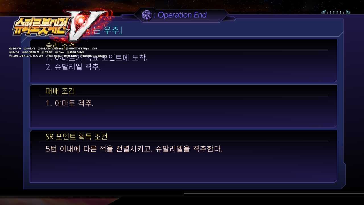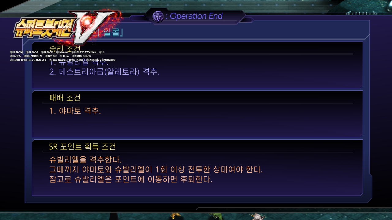 - SR 포인트 조건: (야마토가 한 번도 대미지를 입지 않고 맵을 클리어 한다.)