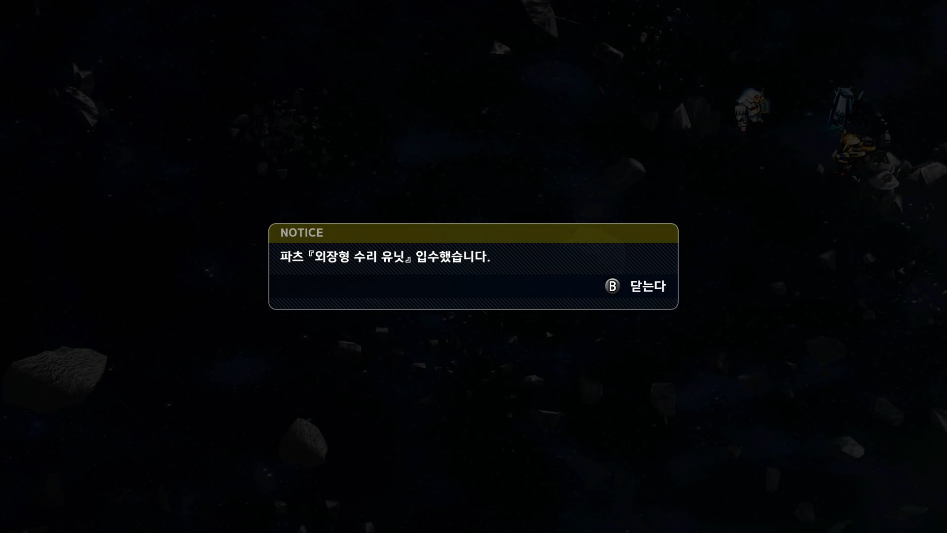 뭔가 좋은 파츠를 주지 않을까 하는데 초반 미션이니 큰 기대는 안 해야겠습니다.