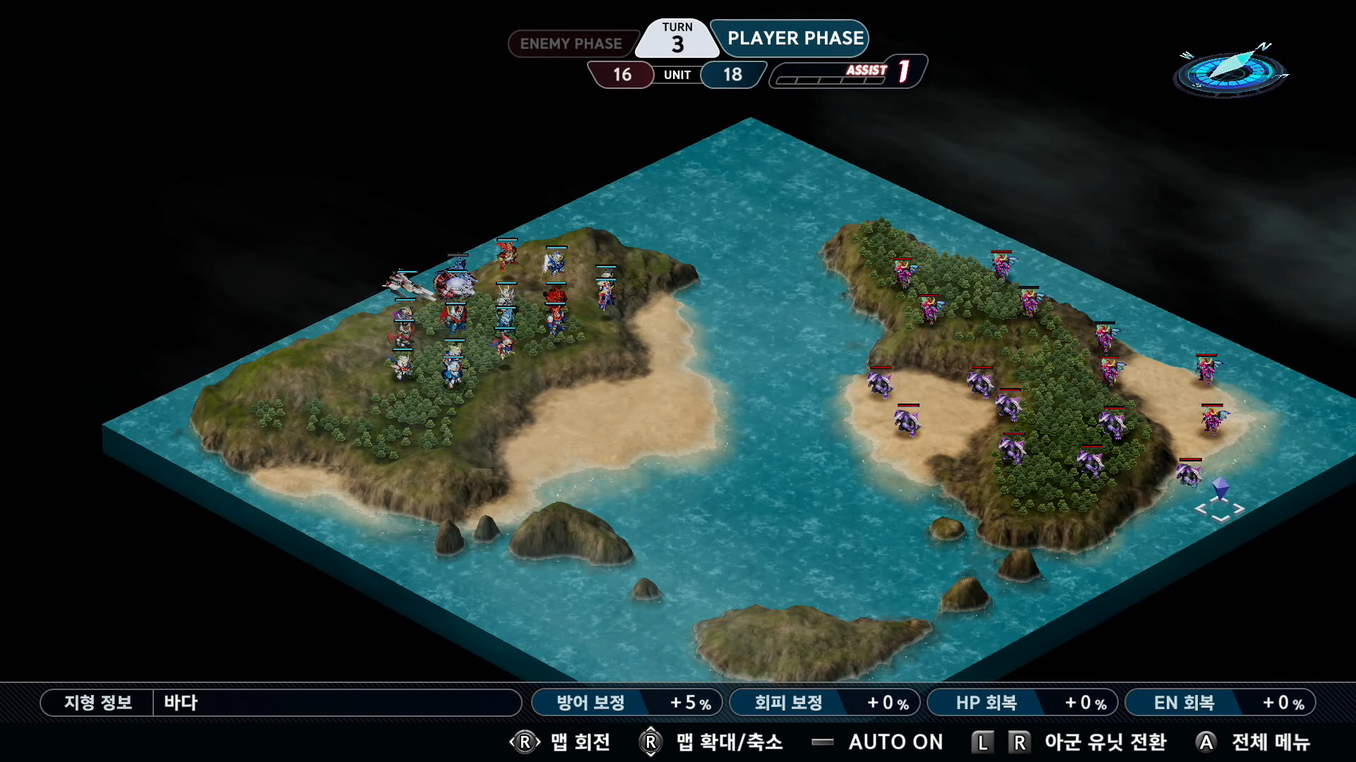 3 턴이 되면 이벤트가 진행되며 다이나제논과 괴수는 후퇴하게 되고 괴수 군단이 등장하고 아군도 동시에 도착하게 됩니다.