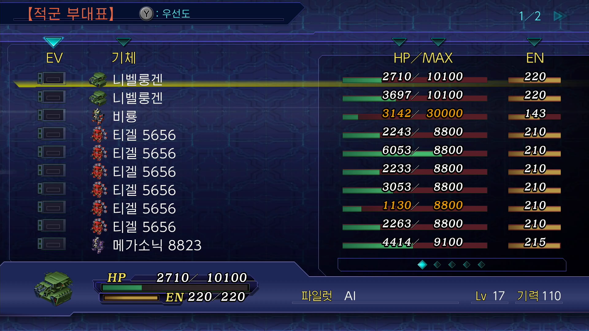그리고 메뉴에서 적군의 부대표를 확인해서 HP가 적은 적군의 수를 확인 후